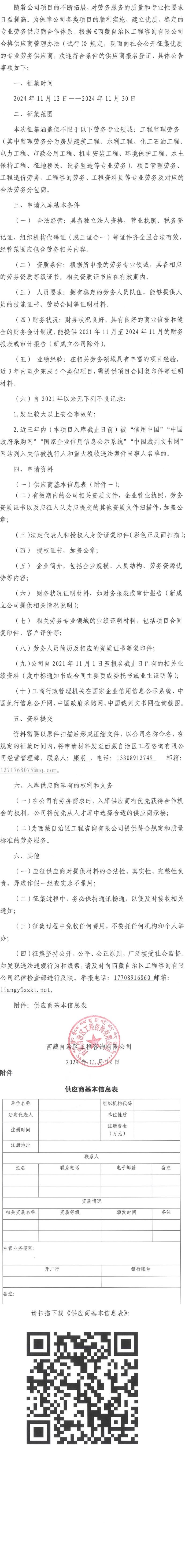 西藏自治區工程咨詢(xún)有限公司專(zhuān)業(yè)勞務(wù)供應商入庫征集公告