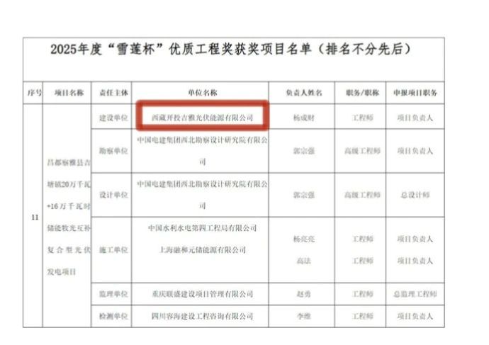8月7日,西藏自治區(qū)住房和城鄉(xiāng)建設(shè)廳公布2025年度“雪蓮杯”優(yōu)質(zhì)工程獲獎(jiǎng)項(xiàng)目名單,由西藏開投吉雅光伏公司投資建設(shè)的昌都察雅縣吉塘鎮(zhèn)20萬(wàn)千瓦+16萬(wàn)千瓦時(shí)儲(chǔ)能牧光互補(bǔ)復(fù)合型光伏發(fā)電項(xiàng)目榮獲該獎(jiǎng)項(xiàng)。