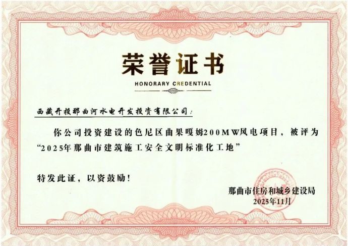 喜報丨色尼區(qū)曲果嘎姆風(fēng)電項目榮譽(yù)+1