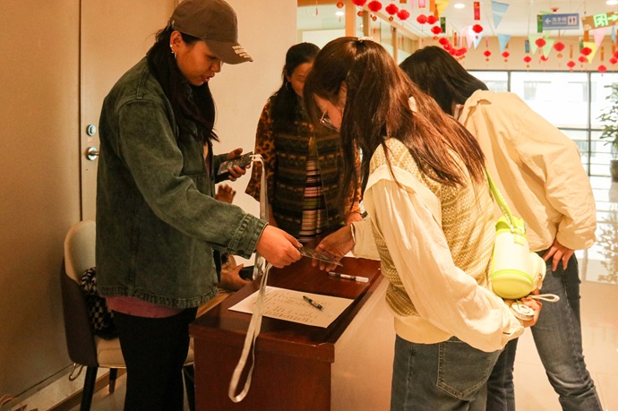 活動(dòng)開(kāi)始前,員工及家屬陸陸續續開(kāi)始簽到入場(chǎng)。在簽到處的旁邊還設置了打卡區,員工及家屬紛紛在此打卡留念。