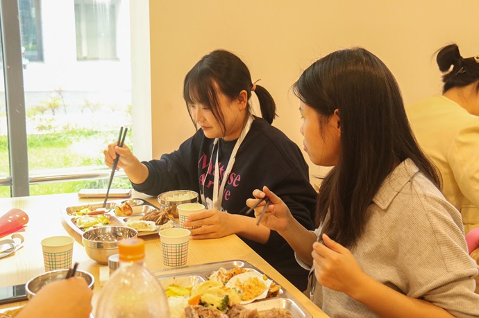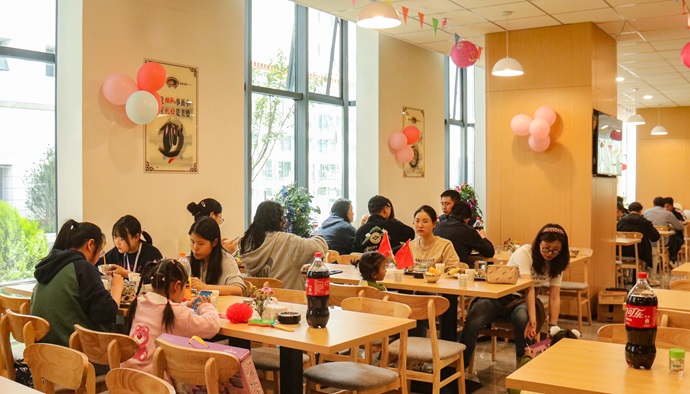 干部職工和家屬們團聚在一起就餐。周田 攝