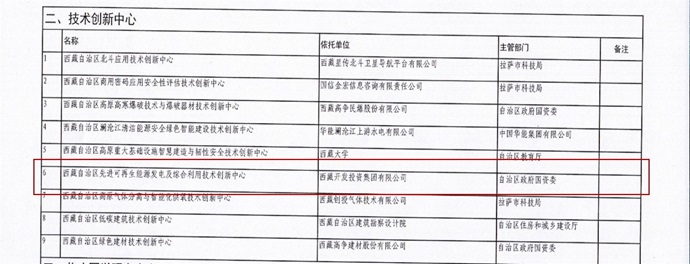 集團公司申報的“西藏自治區先進(jìn)可再生能源發(fā)電及綜合利用技術(shù)創(chuàng )新中心”成功批準籌建
