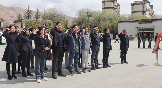 拉薩市烈士陵園內松柏蒼翠、莊嚴肅穆。在革命烈士紀念碑前,參加活動(dòng)的全體黨員職工重溫了入黨誓詞、合唱國歌并敬獻鮮花、清掃陵園,向革命先輩們致以最崇高的敬意和表達無(wú)盡哀思與懷念。