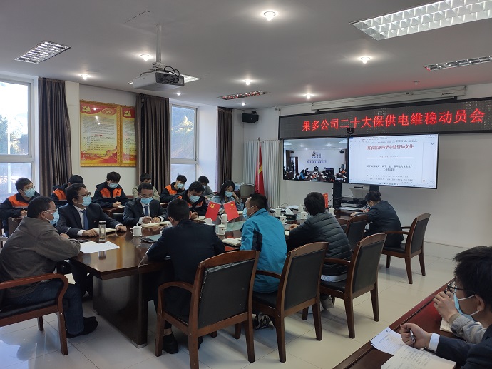 9月29日,果多水電公司召開(kāi)黨的二十大保供電維穩動(dòng)員會(huì ),對黨的二十大電力安全保障和維穩工作進(jìn)行動(dòng)員部署。果多水電公司黨委書(shū)記、總經(jīng)理吳勇出席會(huì )議并講話(huà)。