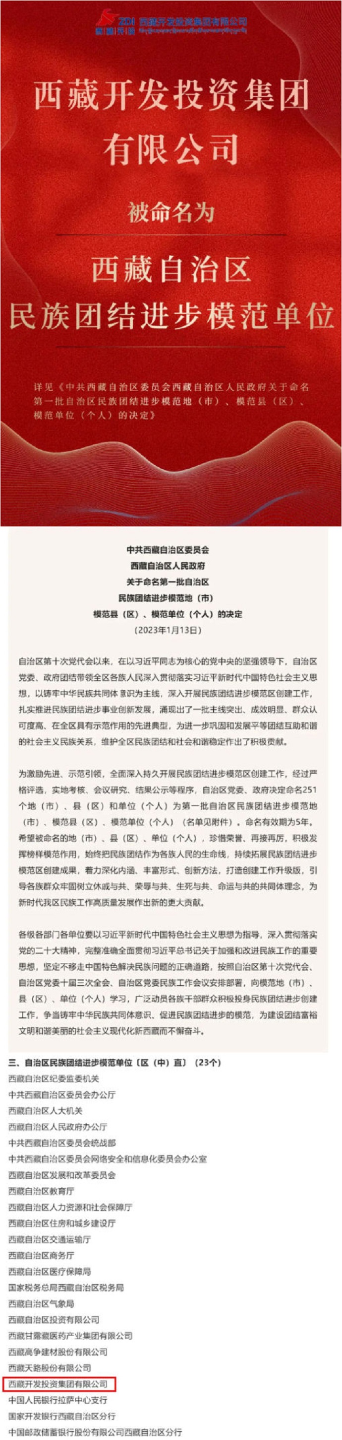 捷報傳來(lái) _ 西藏開(kāi)投集團被命名為“西藏自治區民族團結進(jìn)步模范單位”