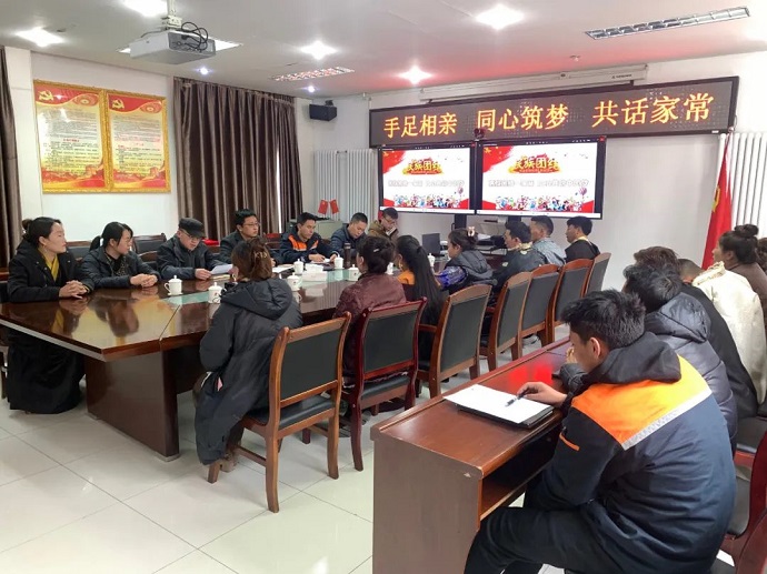在藏歷新年來(lái)臨之際,西藏開(kāi)投果多水電有限公司組織全體藏族職工召開(kāi)“手足相親 同心筑夢(mèng) 共話(huà)家常”座談會(huì ),會(huì )議由果多水電公司董事長(cháng)、總經(jīng)理宋亞?wèn)|主持。