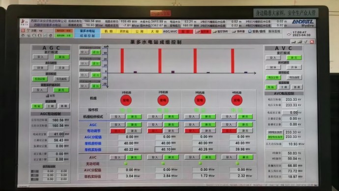 4月30日晚高峰期間,果多水電站4臺機組滿(mǎn)負荷160MW運行,各項工況指標良好。