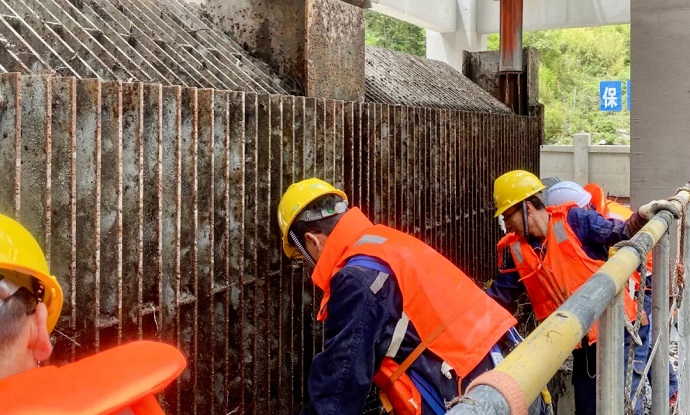 5月31日,金橋水電公司聞“汛”而動(dòng),迅速投入到攔污柵清污工作中。大家分工合作,相互配合,通過(guò)采取多種方法,經(jīng)過(guò)6個(gè)小時(shí)的辛勤勞作,清除了兩孔攔污柵全部堵塞物,確保了進(jìn)水口攔污柵“零”壓差,保障了金橋水電站的正常運行和發(fā)電安全,同時(shí)也為2024年公司安全度汛奠定了基礎。