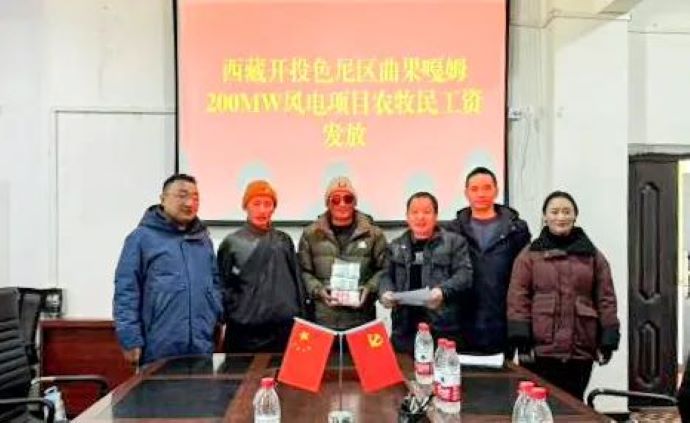 11月28日、12月2日,西藏開(kāi)投那曲河水電公司組織舉行色尼區曲果嘎姆200MW風(fēng)電項目農牧民工資發(fā)放儀式,為羅瑪鎮、香茂鄉5個(gè)村共計338人發(fā)放工資129.96萬(wàn)元。
