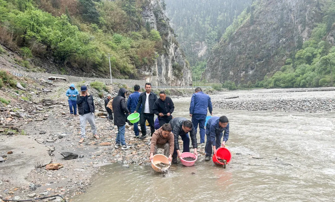 在放流活動(dòng)現場(chǎng),共投放拉薩裸裂尻、異齒裂腹魚(yú)各三千余尾,將有效補充流域野生魚(yú)類(lèi)資源,對改善水生生物種群、維系易貢藏布流域生態(tài)鏈完整具有重要意義。