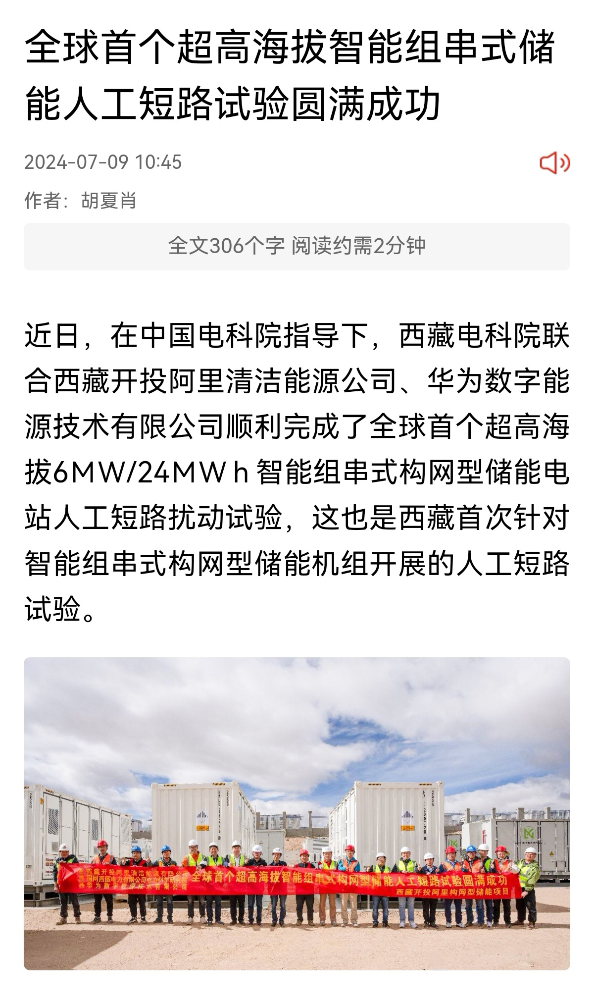 媒體報道丨全球首個(gè)超高海拔智能組串式儲能人工短路試驗圓滿(mǎn)成功