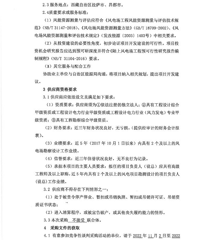 藏東南風(fēng)力發(fā)電項目測風(fēng)和投資機會(huì )研究競爭性談判采購公告