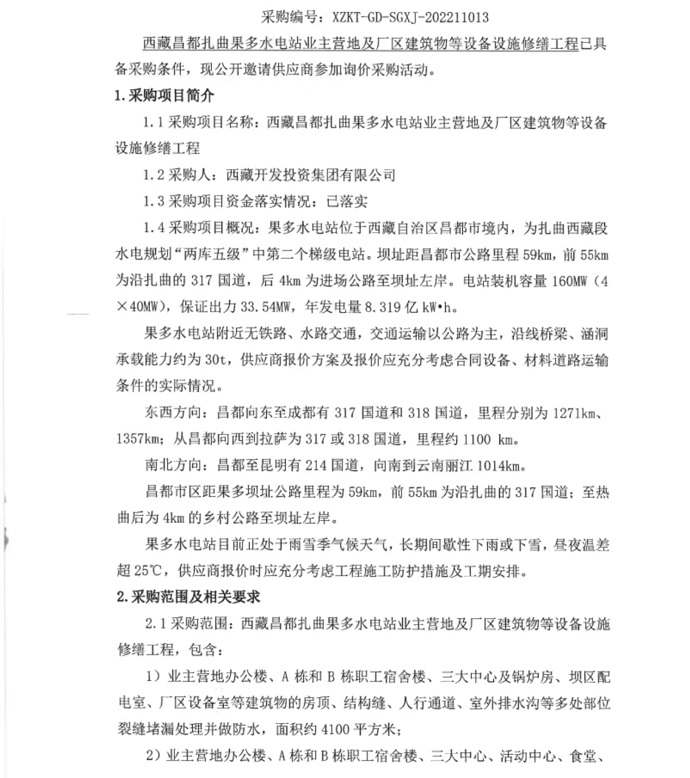 西藏昌都扎曲果多水電站業(yè)主營(yíng)地及廠(chǎng)區建筑物等設備設施