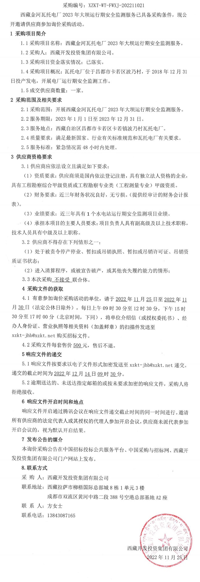 西藏金河瓦托電廠(chǎng)2023年大壩運行期安全監測服務(wù)