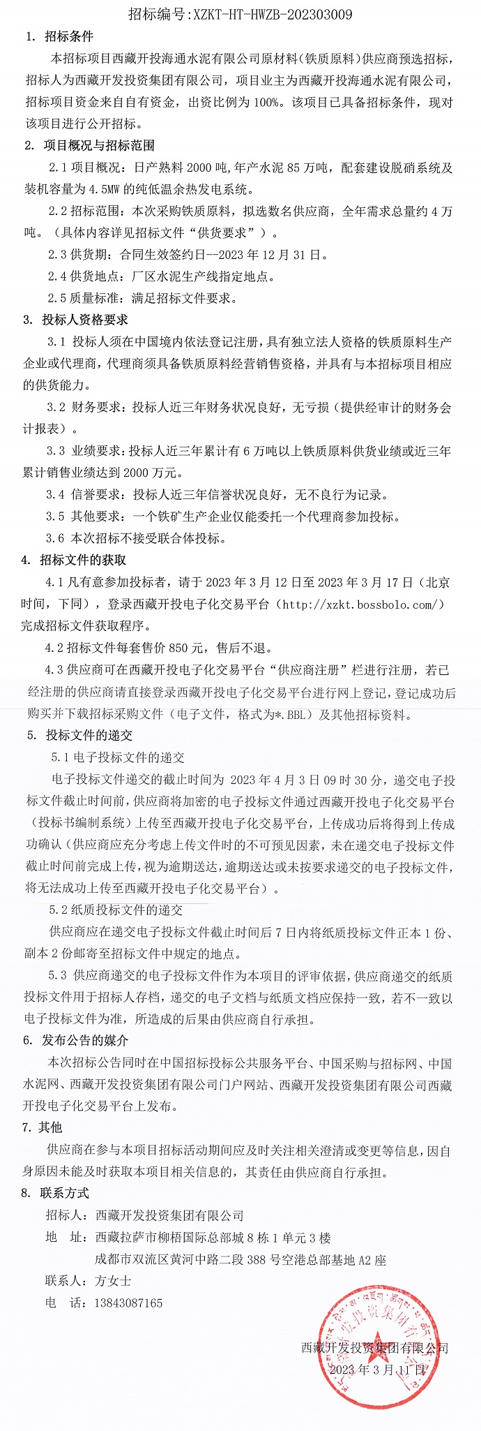 西藏開(kāi)投海通水泥有限公司原材料(鐵質(zhì)原料)