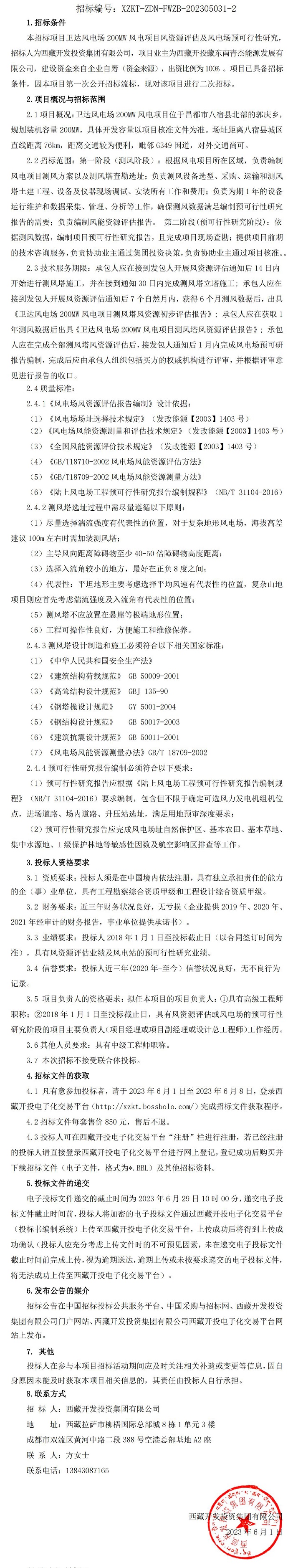 風(fēng)電場(chǎng)預可行性研究招標公告(第二次)