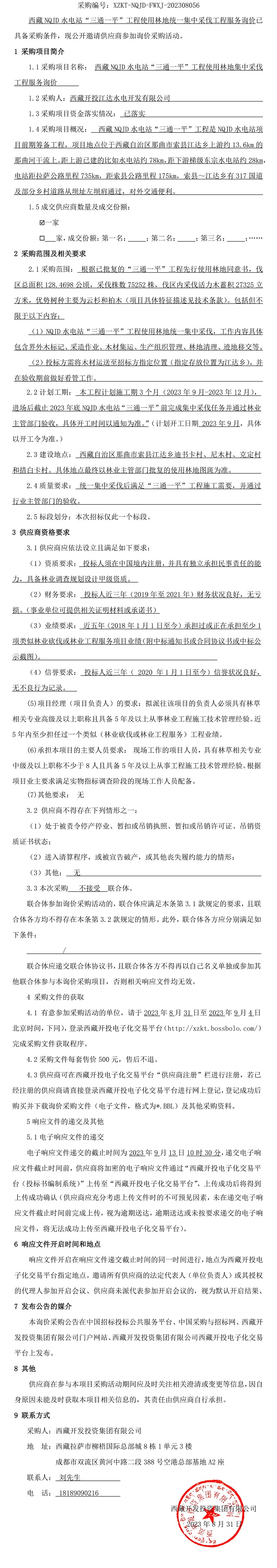 西藏NQJD水電站“三通一平”工程使用林地統一集中采伐工程服務(wù)詢(xún)價(jià)采購公告