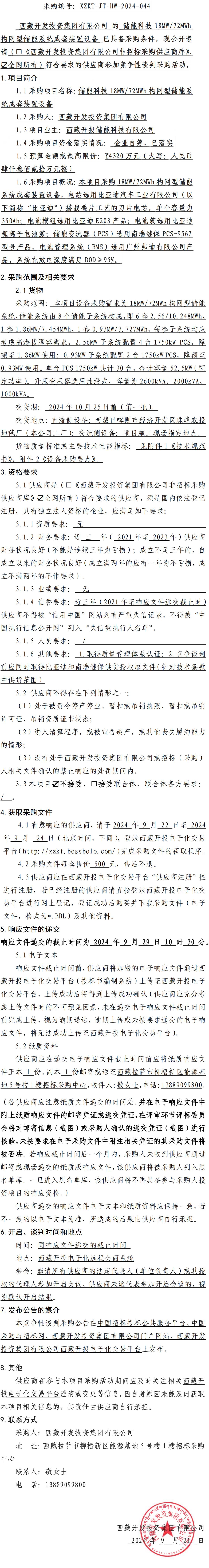 儲能科技18MW72MWh構網(wǎng)型儲能系統成套裝置設備競爭性談判采購公告