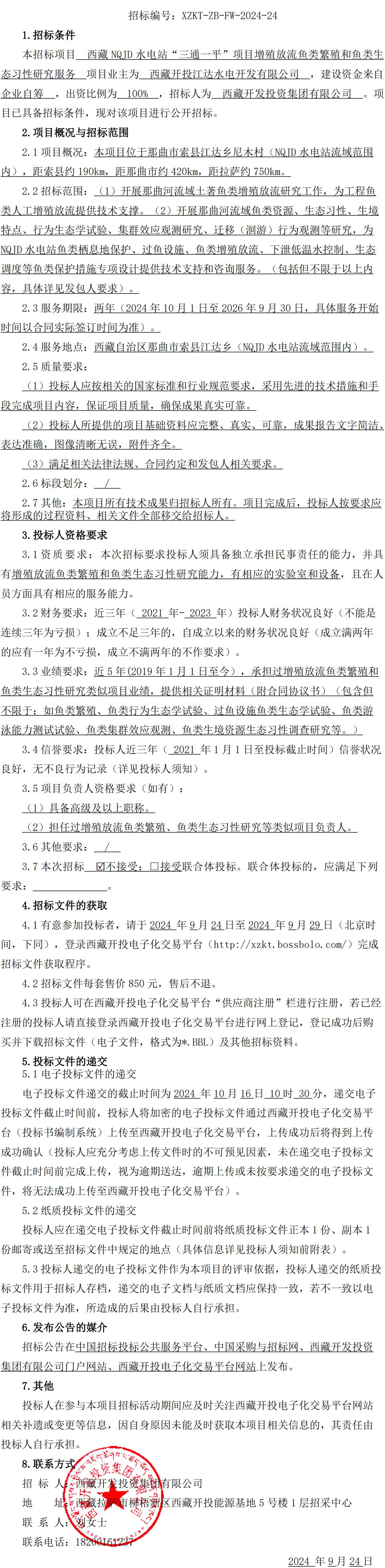 西藏 NQJD 水電站“三通一平”項目增殖放流魚(yú)類(lèi)繁殖和魚(yú)類(lèi)生態(tài)習性研究服務(wù)招標公告