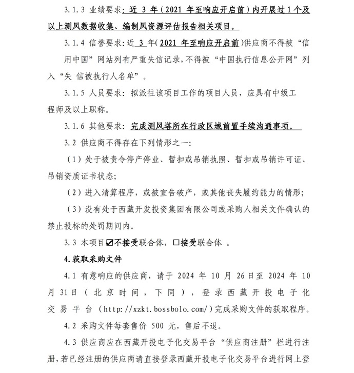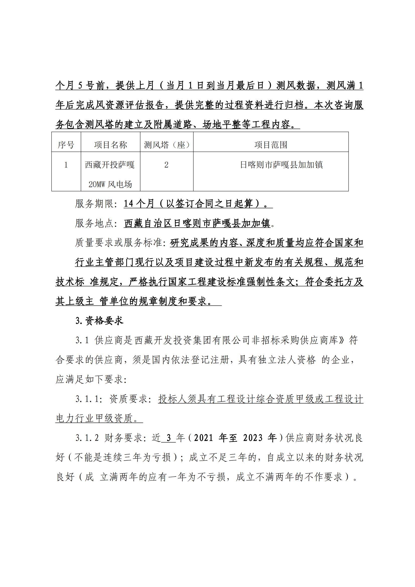 西藏開(kāi)投薩嘎20ML風(fēng)電項目測風(fēng)技術(shù)服務(wù)詢(xún)價(jià)采購公告(第二次)