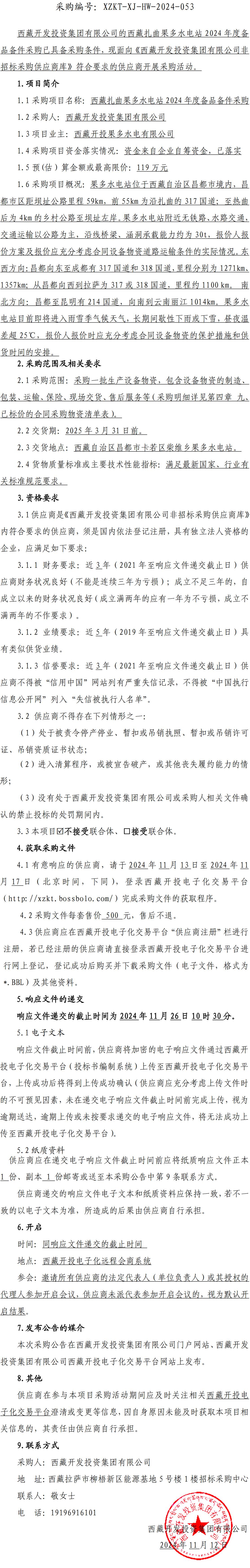 西藏扎曲果多水電站 2024 年度備品備件采購詢(xún)價(jià)采購公告