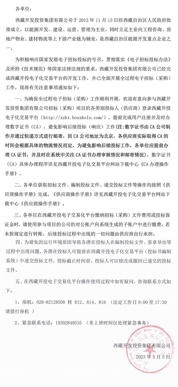 關(guān)于西藏開(kāi)投電子化交易平臺操作使用方面注意事項的通知