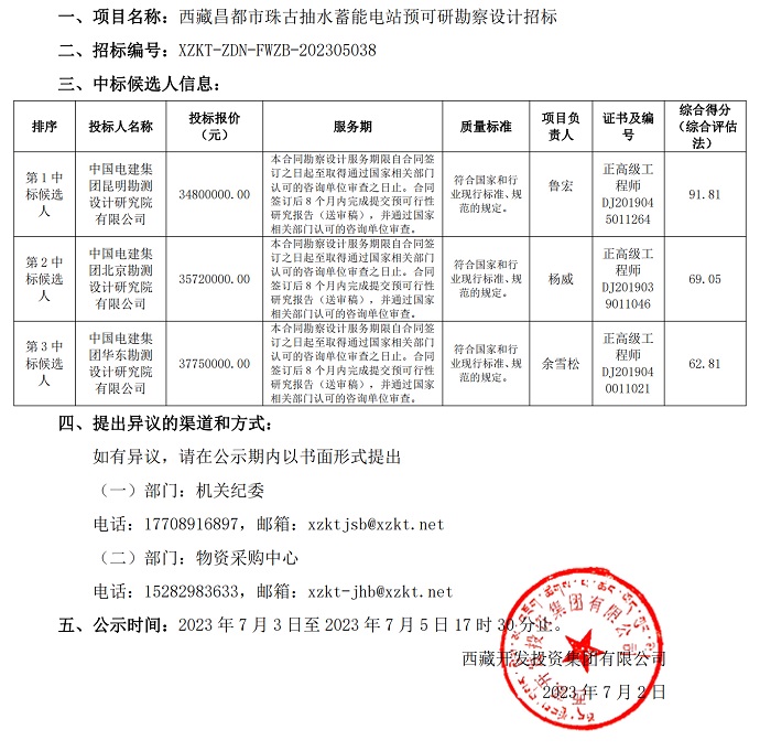 中標候選人公示